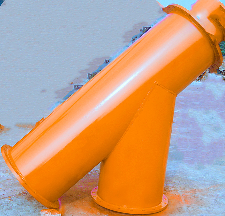 Y型防爆閥結(jié)構(gòu)由主干連接管和分歧管組成,分歧管端部用防爆橡膠板封堵。